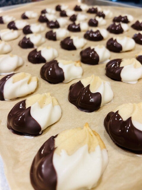 Experience the unmatched taste of tradition with every bite. Each of our crisp, buttery cookies is a work of art, hand-piped and then hand-dipped in a generous coating of rich, gourmet chocolate. Made from a family recipe dating back to the early 1900s, these melt-in-your-mouth treats are the perfect way to make any special occasion or corporate gift truly memorable. Our cookie boxes are an assortment of our finest selection. Available for pre-orders. We start production November 15.