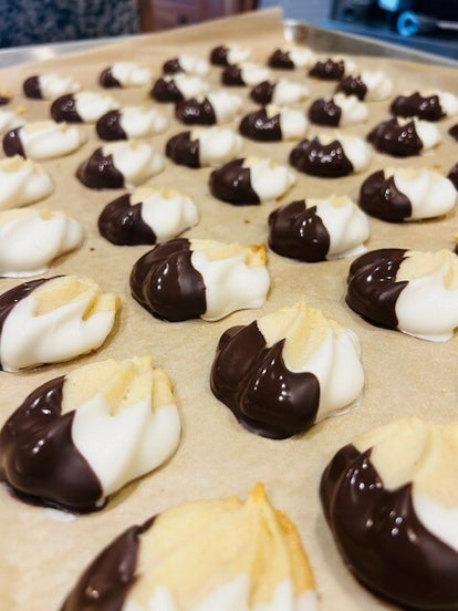 This classic, non‑holiday assortment, includes our melt‑in‑your‑mouth powdered sugar pecan cookies, mini chocolate chip butter cookies, sugar cookies and our signature butter cookies delicately dipped in premium chocolate. Every bite is rich, tender, and irresistibly nostalgic — the kind of treat that makes it nearly impossible to stop at just one.
